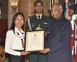![]() Hekani Jakhalu receiving the 2018 Nari Shakti Puruskar award | |