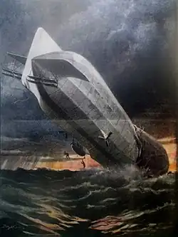 ![]() Helgoland Island air disaster. Illustration by Achille Beltrame for the Italian publication La Domenica del Corriere, 28 September 1913 | |