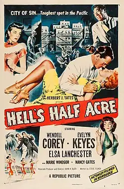 Hell's Half Acre is a 1954 American film noir black and white crime film directed by John H. Auer starring Wendell Corey, Evelyn Keyes and Elsa Lanchester.[1] It was produced and distributed by Republic Pictures.