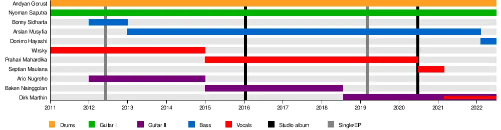 Shortly after the completion of the album, Japs quit the band to pursue hisacareer outside music. He was replaced by Asep (Belantara and former vocalist of Siksakubur) in June 2020[4]