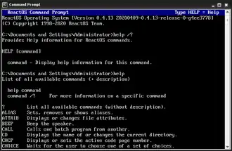 Windows NT-based versions use MS-DOS 5 style help. Versions before Windows Vista also have a Windows help file (NTCMDS.HLP