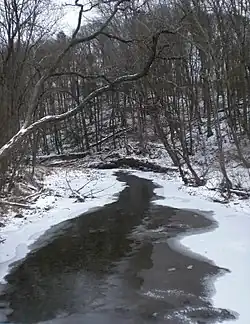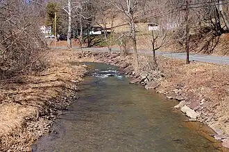 Hemlock Creek's main tributaries are West Hemlock Creek and Frozen Run.[1] West Hemlock Creek also has several unnamed tributaries.[4] Frozen Run starts in western Hemlock Township and flows eastward through Frosty Valley to join Hemlock Creek in Buckhorn. West Hemlock Creek also starts in western Hemlock Township and joins the main stem in Buckhorn.[2]