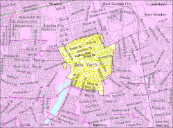 The Village of Hempstead differs from the majority of Nassau County as its population density is about 15,000 people per square mile—almost four times that of its neighbor on its northern border, Garden City.[23]