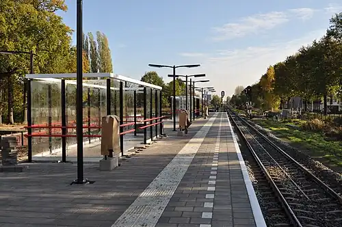 The station is located on the Staatslijn D (Zutphen - Glanerbeek) and is located near the Streekziekenhuis Midden-Twente (Hospital) in the west of Hengelo. A station called Tuindorp-Nijverheid, which opened on 1 November 1865 as part of the Staatslijn D and closed in 1936, used to exist in the general area of the new station. The construction of the new station was planned to begin by April 2009, and to be completed by December 2009. The station finally opened on 9 December 2012. The new station has a 130-metre (427 ft) long platform, and a 42-metre (138 ft) long covered area with 20 seats and a ticket machine. The train services are operated by Arriva.