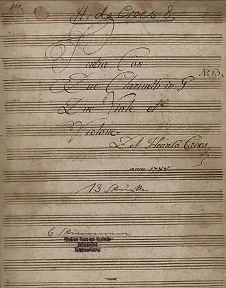 Henricus Josephus de Croes, Hendrik Jozef de Croes, known as Henri-Joseph de Croes (Brussels, 1748 – Regensburg, 1842) was a Flemish composer and violinist. He was Kapellmeister of the court orchestra of the Thurn und Taxis in Regensburg. He composed symphonies, various clarinet concertos, partitas, divertimenti and a Singspiel or opera.[1]