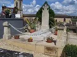 On 9 September 1901, at the age of 36, Toulouse-Lautrec died from complications due to alcoholism and syphilis at his mother's estate, Château Malromé, in Saint-André-du-Bois. He is buried in Cimetière de Verdelais, Gironde, a few kilometres from the estate.[48][49] Toulouse-Lautrec's last words reportedly were "Le vieux con!" ("The old fool!"), his goodbye to his father.[28]