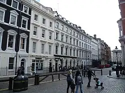 The original occupants of the street were mainly tradesmen but later members of the nobility had houses in the street. By 1667 there were five shops, and ten by 1669. In the early 1700s, John Strype described the street as "generally taken up by eminent Tradesmen, as Mercers, Lacemen, Drapers, etc". In 1763, Thomas Mortimer's The Universal Director recorded that there were twelve residents, who included three artists, a baker, a surgeon, a linen draper, two stockbrokers, a mercer and three apothecaries.[2]