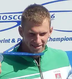 In 2015 he won a gold medal in the 2015 European Games for Lithuania in Canoe sprint.[1]