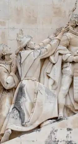 Effigy of Frei Henrique de Coimbra on the Padrão dos Descobrimentos, in Lisbon, Portugal.