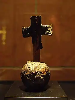 Henry was raised by his father, who made him Duke of Bavaria in 1026, appointed him co-ruler in 1028 and bestowed him with the duchy of Swabia and the Kingdom of Burgundy ten years later in 1038.[4] The emperor's death the following year ended a remarkably smooth and harmonious transition process towards Henry's sovereign rule, that was rather uncharacteristic for the Ottonian and Salian monarchs.[4] Henry succeeded Conrad II as Duke of Carinthia and King of Italy and continued to pursue his father's political course on the basis of virtus et probitas (courage and honesty), which led to an unprecedented sacral exaltation of the kingship. In 1046 Henry ended the papal schism, was crowned Emperor by Pope Clement II, freed the Vatican from dependence on the Roman nobility and laid the foundation for its empire-wide authority. In the duchies, Henry enforced the sovereign royal right of disposition, thereby ensuring tighter control. In Lorraine, this led to years of conflict from which he emerged victorious. Another sphere of defiance formed in southern Germany from 1052 to 1055. Henry III died in 1056, aged only 39. Modern historians identify the final years of his reign as the beginning of a crisis in the Salian monarchy.[5][6]
