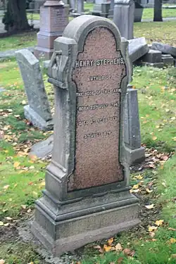 Stephens died at home, Redbraes Cottage[5] off Broughton Road in Edinburgh, and was buried nearby at the western (sealed) entrance to Rosebank Cemetery. He was unmarried and had no children.