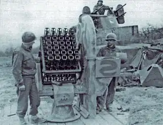 ![]() A Föhn-Gerät rocket projector captured by US troops clearly shows the origin of its occasionally used nickname of "Beercrate flak". | |