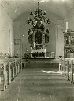 The earliest existing historical records of the church date back to the year 1432, but the church was originally constructed during the second half of the 1100s. The church has a rectangular nave, a tower to the west, and a narrower choir with a semicircular apse. The choir and apse have a lower roof line than the nave. Research on the building has shown that the choir part is the oldest part of the existing building with the apse and nave built a little later. Originally, the current choir was the stone nave that was attached to a wooden building. The wood building was later torn down and the stone building was expanded. Over the years, the church fell into disrepair. During the early 1400s, the western wall of the church was taken down and the stone nave was shortened by about 4 metres (13 ft) and then a new wall was built. In 1879, the church was enlarged by doubling the length the nave (adding about 10 metres (33 ft) to the nave) and then a new west tower was added on the end of the new nave. In the 1960s, the church was thoroughly renovated by the architect John Egil Tverdahl.[3][4]