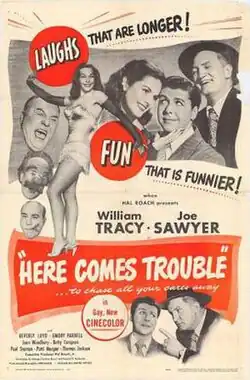 Here Comes Trouble is a 1948 American comedy film in the Hal Roach's Streamliners series. It was produced and directed by Fred Guiol and written by George Carleton Brown and Edward E. Seabrook. The film stars William Tracy, Joe Sawyer, Emory Parnell, Betty Compson (in her final film) and Joan Woodbury. It was released on March 15, 1948 by United Artists.[1][2]