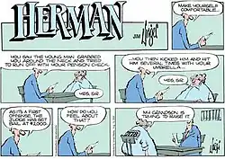 Unger's brother Bob was a major influence on the Herman comic.[1] Herman was syndicated from 1975 to 1992, when Unger retired, running for 18 years in 600 newspapers in 25 countries.[2]