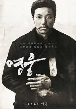 Hero (Korean: 영웅; RR: Yeongung) is a 2022 South Korean historical musical drama film directed by Yoon Je-kyoon, starring Jung Sung-hwa, Kim Go-eun, and Na Moon-hee. Based on the stage musical of the same name, the film follows the true story of An Jung-geun, a Korean-independence activist who assassinated Itō Hirobumi, the first Prime Minister of Japan and Resident-General of Korea in 1909.[2] It was released theatrically on December 21, 2022.[3][4]