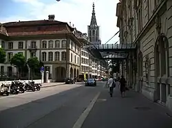 The Herrengasse ("Nobles' Lane") is one of the streets in the Old City of Bern, the medieval city center of Bern, Switzerland. It was the southernmost street of the old Zähringerstadt (Zähringer town) of Bern and ended at the first city wall. Three buildings on the Herrengasse are listed on the Swiss inventory of heritage site of national significance[1] and it is part of the UNESCO Cultural World Heritage Site that encompasses the Old City.