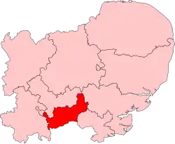 After the 1984 boundary changes based on the new UK parliamentary constituencies created in 1983, it consisted of the constituencies of Broxbourne, Hertford and Stortford, Hertsmere, St. Albans, South West Hertfordshire, Watford and Welwyn Hatfield.[2] Stevenage was transferred to Bedfordshire South.