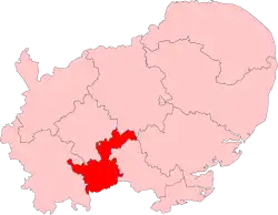 1994 saw further boundary changes and the constituency now consisted of Hertsmere, North Hertfordshire, St. Albans, South West Hertfordshire, Watford, Welwyn Hatfield and West Hertfordshire.[3] Broxbourne as well as Hertford and Stortford were now part of Essex West and Hertfordshire East. North Hertfordshire and West Hertfordshire had previously been part of Bedfordshire South.