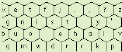 The name ‘HexInput’ is unfortunate: in computing, ‘hex’ tends to mean hexadecimal notation, though it may be argued that a general text input method is named for general users, not just those with computing backgrounds. The use of hexagons is not essential to the idea, though they do maximize the available area per cell and the number of easily reachable neighbors per cell.