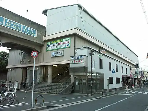 Higashi-Hagoromo Station (東羽衣駅, Higashi-Hagoromo-eki) is a passenger railway station in located in the city of Takaishi, Osaka Prefecture, Japan, operated by West Japan Railway Company (JR West).