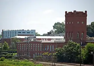 The Highland Park Manufacturing Company Mill No. 3 is a historic textile mill complex and national historic district located at 2901 N. Davidson St. in Charlotte, Mecklenburg County, North Carolina. The district encompasses included five contributing buildings and are the original mill building (1903-1904) and major weaving room addition (c. 1946), Gate House (c. 1904, 1920), Dye House (c. 1925), Boiler House (c. 1903-1904), and Waste House (1903-1904). The original mill was designed by Stuart W. Cramer and features a four-story tower capped by fancy corbelling and crenelated parapets.[2]