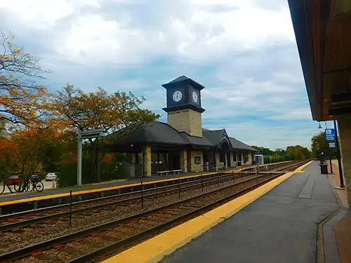 The station consists of two side platforms and a waiting room, with a ticket agent booth staffed on weekday mornings. Northbound trains stop on the west platform and southbound trains stop on the east platform. Trains go south to Chicago’s Ogilvie Transportation Center, and as far north as Kenosha, Wisconsin.