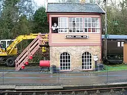 The signal box opposite the platform remained in use until 1969 when Alveley colliery closed and freight traffic ceased. The station site was disused until preservation.