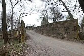 The Highway B-29 Bridge is a historic bridge in Prairie Grove, Arkansas. It is a single-span concrete arch bridge, carrying Washington County Route 623 across the Illinois River. The arch has a span of 97 feet (30 m), and the total structure length is 100 feet (30 m). Its deck is 17 feet (5.2 m) wide, and the bridge is typically 20 feet (6.1 m) above the water. Built in 1923, the bridge is one of the first built in the county by the Luten Bridge Company, which used an innovative technique involving metal rings (polished for visual effect on this bridge) that reduced the amount of material required for the structure.[2]