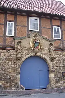 The last visible structural trace of the charterhouse is the Baroque gateway in the Neue Straße, now part of the St. Bernward Hospital, with figures of the Madonna in glory, Saint John the Baptist and Saint Bruno of Cologne, the founder of the Carthusian Order, standing on pedestals above it.