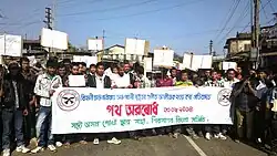 The Hill State movement developed in the Garo and Khasi hills.[22] The movement emerged at a meeting in Shillong on 16–17 June 1954 called by Captain Wiliamson Sangma of the Garo Hills District Council to discuss creation of a separate hill state and amendments to the Sixth Schedule.[23] All the participants were against the attempt to impose Assamese as the state language.[24] The representatives from the United Mikir and North Cachar Hills and the Lushai Hills wanted to remain within Assam but with greater autonomy, while those from the Khasi, Jaintia and Garo communities wanted a separate state or states.[23] The Naga National Council became dominated by separatists.[17] The Naga leader Angami Zapu Phizo did not participate in the Hill State movement since he was pursuing independence for Nagaland alone.[23]
