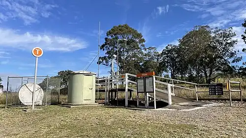 Hilldale consists of a single wooden and concrete platform about three metres long. It is serviced by NSW TrainLink Hunter Line services travelling between Newcastle and Dungog. There are five services in each direction on weekdays, with three on weekends and public holidays.[3] It is a request stop with passengers required to notify the guard if they wish to alight and "flag" the train down if they wish to board.