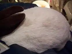 The Himalayan rabbit is a small breed of rabbit with similar markings to the Californian rabbit.[1] The body is white with colored points, recognized colors are black, blue, chocolate, and lilac.
