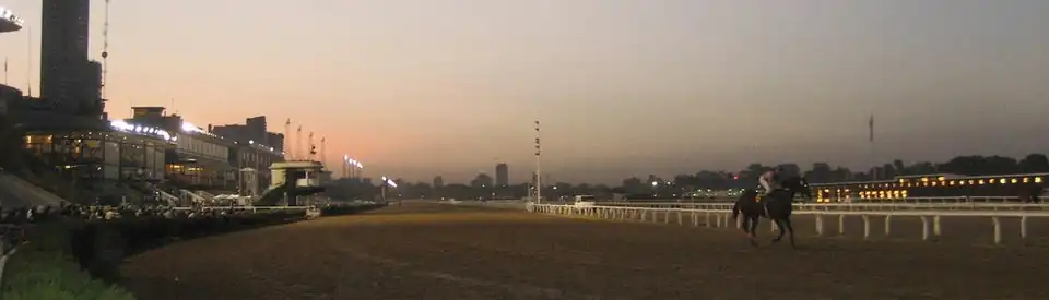 The course itself consists of three courses, made of eighty percent sand, fourteen percent limestone, and six percent clay, with a special natural drainage system that allows for normal racing to continue on rainy days. The main course is 2,400 metres (1.5 mi) around, 28 metres (31 yd) wide, 600 metres (0.37 mi) from the final turn to the finish line, and a chute allowing for races as long as 1,100 metres (0.68 mi) to be run on a straight line. Up to 21 horses can run in a race at a time.[1] A turf course was added in 2011.[5]