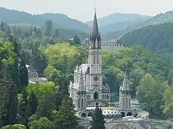 Durand built the church of Saint-André de Bayonne between 1853 and 1862 in collaboration with the Basque architect Hippolyte Guichenné. He built the Priory of the Ursulines in Auch, the Church of Saint-Michel in Condom, Gers, and the churches of Peyrehorade, Soustons and Tartas. He was responsible for the realization of the Basilica of Our Lady of the Immaculate Conception at Lourdes, completed in 1872 and submitted to the Salon the same year.[1] In 1868 the Bishop of Tarbes tried to get Durand admitted to the Legion of Honor for the quality his work in building the Tarbes seminary. After some delay, he was awarded the Legion of Honor in 1875.[1]