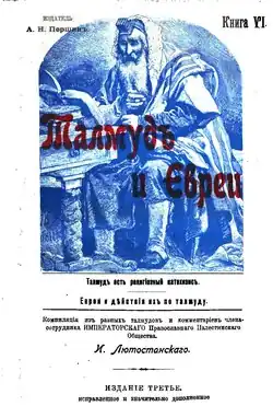 He maintained that Jews wanted to divide Russia among themselves, once they left the Pale of Settlement, furthering the claims laid in the antisemitic works of Osman Bey (pen name of Frederick van Millingen) The Conquest of the World by the Jews,[4] and contributing to the creation of the Protocols of the Elders of Zion.[5] In 1904 he directly quoted Pavel Krushevan's version; without revision, in an updated edition of his The Talmud and the Jews book. (See main article Cesare G. De Michelis about the versions.)