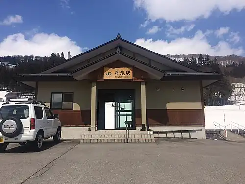 Hirataki Station (平滝駅, Hirataki-eki) is a railway station on the Iiyama Line in the village of Sakae, Shimominochi District, Nagano Prefecture, Japan, operated by East Japan Railway Company (JR East).