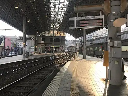 Hiroden-Nishi-Hiroshima Station (Japanese: 広電西広島駅) is a Hiroden terminal station on Hiroden Main Line and Hiroden Miyajima Line, located south side of the JR Nishi-Hiroshima Station in Koi-hon-machi, Nishi-ku, Hiroshima.[1]