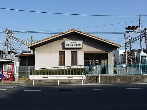 Hirono Golf-jō-mae Station (広野ゴルフ場前駅, Hirono Gorufujō-mae-eki) is a passenger railway station located in the city of Miki, Hyōgo Prefecture, Japan, operated by the private Kobe Electric Railway (Shintetsu).
