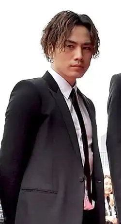 In August 2014, he made his acting debut in the film Hot Road.[32] Leading the film alongside Rena Nōnen, he played Hiroshi Haruyama, who was a member of the motorcycle gang "Nights" and fell in love with Rena Nōnen's character Kazuki Miyaichi, a troubled teenage girl.[33][34][35] With his role in this film, he won Best New Artist Award at the 39th Hochi Film Awards,[36] Sponichi Grand Prize Newcomer Award at the 69th Mainichi Film Awards,[37] the New Actor Award at the 24th Japan Movie Critics Awards,[38] and the Newcomer of the Year Award as well as Popularity Award at the 38th Japan Academy Film Prize.[5]