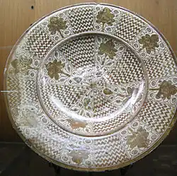5. ^ Caiger-Smith, 1985, has successive chapters called 6 "Moorish Lustre of Andalucia" and 7 "Hispano-Moresque Lustre", but most sources do not so distinguish, which given the difficulty of distinguishing the two reliably, and re-allocation of some types from one to the other, seems prudent.