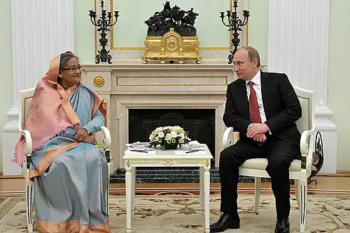 2018 Bangladeshi general election were held on 30 December 2018.[75] The result was a landslide victory for the Awami League led by Sheikh Hasina. The elections were marred by violence and claims of vote rigging.[76] Opposition leader Kamal Hossain rejected the results, calling it "farcical" and demanding fresh elections to be held under a neutral government.