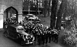 The following morning a large crowd led by Nazi brownshirts gathered in the market square, calling for the resignation of the Senate and hanging swastika flags on the facade of the city hall. The Police President refused to intervene, and hundreds of people gathered again in the afternoon. A Nazi delegation, led by Gauleiter Karl Röver and Kreisleiter Bernhard, entered the city hall and confronted the Senate with Nazi demands, including the transfer of the police administration in the hands of the Nazi Party. The Senate did not accept these demands, but agreed to hoist the former Imperial flag. As a result, the three Social Democratic members of the Senate resigned. However, since the Senate rejected the other demands, that evening the Reich Interior Minister Wilhelm Frick intervened and appointed Richard Markert as the Reichskommissar in charge of the Bremen police.[29] Shortly afterwards, the remaining members of the Senate agreed that they would disband, effectively leaving Bremen under the control of the Nazis. After the formal resignation of the Senate, the Bürgerschaft elected Markert Senate President and acting Bürgermeister on 18 March.[30]