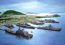 The Vietnamese during Lý dynasty had one major war with Song China, and a few invasive campaigns against neighboring Champa in the south.[87][88] The most notable conflict took place on Chinese territory Guangxi in late 1075. Upon learning that a Song invasion was imminent, the Vietnamese army under the command of Lý Thường Kiệt, and Tông Đản used amphibious operations to preemptively destroy three Song military installations at Yongzhou, Qinzhou, and Lianzhou in Guangdong and Guangxi, and killed 100,000 Chinese.[89][90] The Song dynasty took revenge and invaded Đại Việt in 1076, but the Song troops were held back at the Battle of Như Nguyệt River commonly known as the Cầu river (Bắc Ninh) about 40 km from the current capital, Hanoi. Neither side was able to force a victory, so the Vietnamese court proposed a truce, which the Song emperor accepted.[91] Champa and the powerful Khmer Empire took advantage of Đại Việt's distraction with the Song to pillage Đại Việt's southern provinces. Together they invaded Đại Việt in 1128 and 1132.[92] Further invasions followed in the subsequent decades.[93]