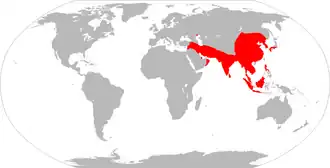 In 1852, cholera spread east to the Dutch East Indies and later was carried to Japan in 1854. The Philippines were infected in 1858 and Korea in 1859. In 1859, an outbreak in Bengal contributed to transmission of the disease by travelers and troops to Iran, Iraq, Arabia, and Russia.[27] Japan suffered at least seven major outbreaks of cholera between 1858 and 1902. Between 100,000 and 200,000 people died of cholera in Tokyo in an outbreak in 1858–1860.[37]