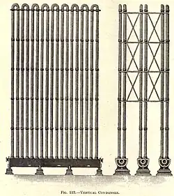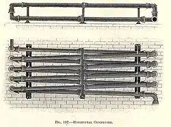 Air cooled condensers were often made up from odd lengths of pipe and connections. The main varieties in common use were classified as follows: