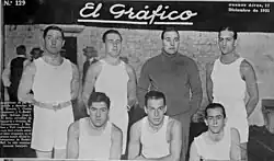 The team played around Oscar Furlong, a center with good mobility and passing skills.[4] Other important players were Ricardo González (captain), Leopoldo Contarbio, Juan Carlos Uder, Raúl Pérez Varela and Roberto Viau (who was 18 years old at the time of the tournament). In the tournament itself, Argentina defeated France (56–40) in the preliminary round, followed by Brazil (40–35), Chile (62–41), France again (66–41) and EuroBasket champions Egypt (68–33) in the final round; before defeating the United States in the decisive match (64–50).