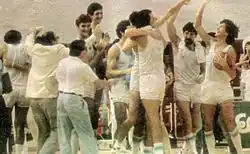 In 1980, coached by Ripullone and with the assistance of Yugoslavian Ranko Zeravica, the team finished third in the Tournament of the Americas, earning their first qualification for the Olympics since 1952. This was arguably the biggest achievement for Argentine basketball since the 1950 World Championship title.[7] However, due to the country's adherence to the U.S.-led boycott of the Moscow Olympics, the team did not compete in the tournament. The decade continued with a second place in the 1983 South American Basketball Championship (with Alberto Finguer as coach) and a disappointing 7th place (among nine teams) in the 1984 Tournament of the Americas held in Brazil.