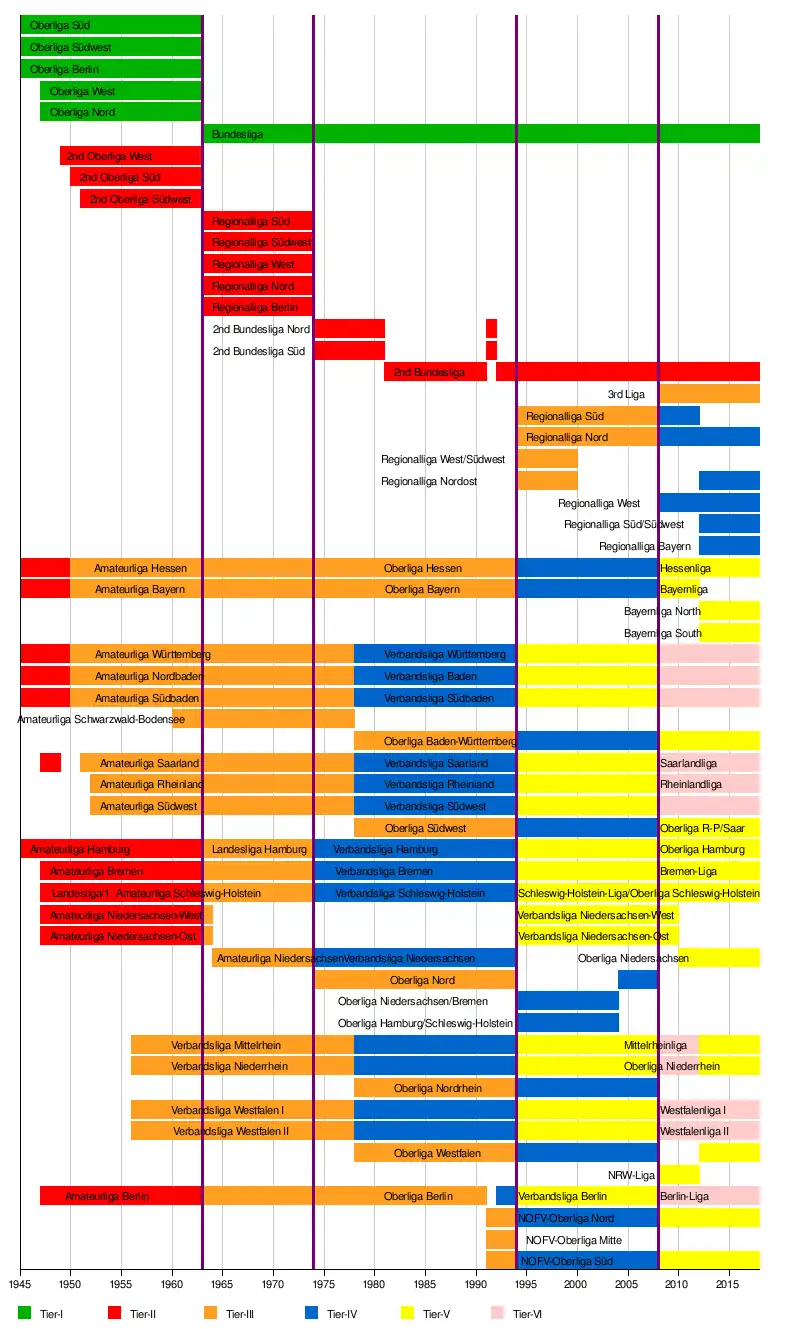 Level | 2008– | 1994–2008 | 1974–1994 | 1963–1974 | 1945–1963 | 1933–1945 | 1903–1932 | DDR 1949–1991 |