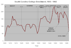 With the generous support of the General Assembly, South Carolina College acquired a reputation as the leading institution of the South and attracted several noteworthy scholars, including Francis Lieber, Thomas Cooper, and Joseph LeConte. However, the college suffered greatly and lost most of its prestige when it closed during the American Civil War.